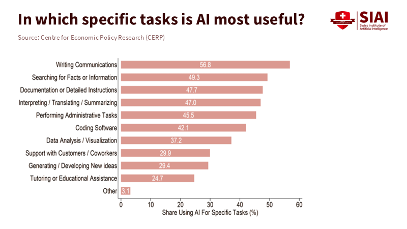 The extent of adoption is another barrier. U.S. survey data indicate that generative AI is spreading quickly overall. Still, only a portion of workers use it regularly for their jobs. One national study found that 23% of employed adults used it for work at least once in the previous week. OpenAI's analysis suggests that about 30% of all ChatGPT usage is work-related, with the remainder being personal. In educational settings, this divide is evident as faculty and students test tools for minor tasks. At the same time, core course design and assessment remain unchanged. If only a minority use AI at work and even fewer engage deeply, system-wide productivity barely shifts. This isn't a failure of the technology; it signals that policy should focus on encouraging deeper use in the workflows that matter most for learning and development.