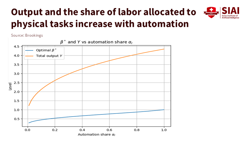 When A expands while K and L do not, the share of labor can decline even when overall output stays constant. In simple terms, the same amount of production can require fewer workers. But this isn't an inevitable outcome. If physical and intellectual outputs complement rather than replace one another, investments in labs, clinics, logistics, and classrooms can help stabilize wages. This points to a critical shift for education systems: focusing on environments and approaches where physical presence enhances what AI alone cannot provide—care, hands-on skill, safety, and community.