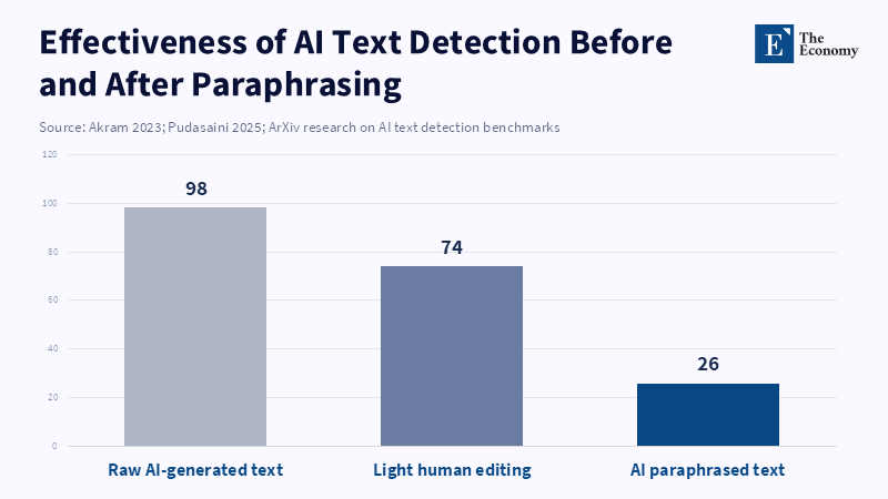 Companies like Turnitin have released AI-writing detectors and claim they are very accurate. But these claims depend on the situation: accuracy varies with the type of writing, the writer's skill, and the extent to which the writing changes. Independent tests consistently show that the results vary widely. Some tools work well on raw AI output, but most fail when the text has been edited or comes from people who don't speak the language well. What's worse, false positives are a problem. If a detector flags a student's original work as AI, it undermines trust and can lead to unfair punishments. While detection is a helpful tool, it can't be the only way to judge academic work.