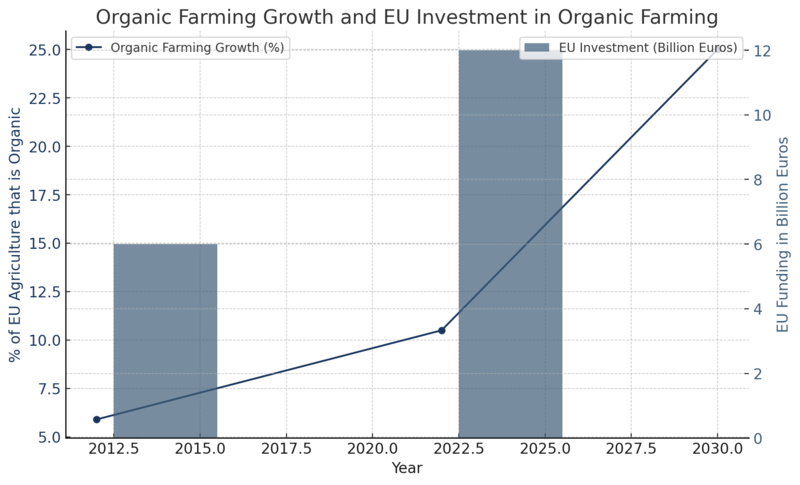 In 2024, the European Court of Auditors (ECA) published a study evaluating the effectiveness of EU funding for organic farming. Since 2014, the EU has invested over €12 billion to promote organic farming. But according to the research, organic production has not increased much as a result of the funding. The ECA report's main conclusions emphasize the absence of adequate tracking and monitoring methods, ineffective cash allocation, and the sluggish expansion of organic farming. These results imply that although the EU is investing much on organic farming, the results are not as significant as anticipated. Improvements must be made if the EU is to meet its organic farming targets. To successfully resolve issues, experts advise better funding distribution, enhanced monitoring systems, and increased interaction with farmers and others.