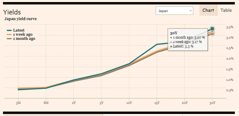 According to CNBC on the 3rd (local time), the yield on Japan’s 30-year government bond surged 8.5 basis points (bp, 0.01%) to 3.285%, the highest level since its listing. The yield has risen more than one percentage point so far this year. Bond yields move inversely to prices. The 20-year yield climbed to 2.695%, the highest since 1999, with an 8bp increase this year, while the 10-year benchmark yield traded at 1.633%, its highest since 2008, up more than 5bp since January. The 40-year yield also gained about 9bp this year to reach 3.506%.