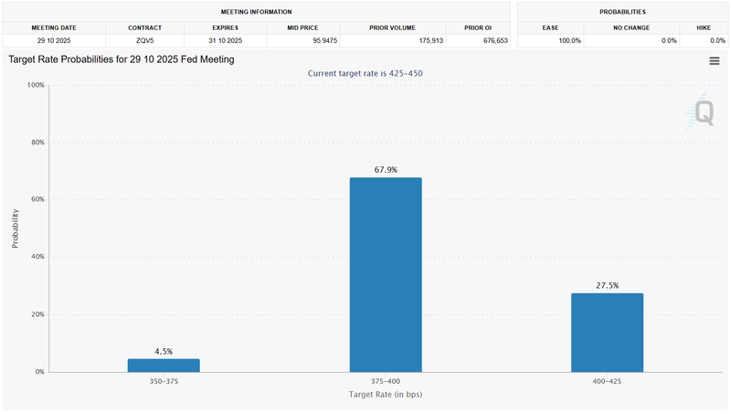 Concerns over labor-market weakness have solidified market bets on a September rate cut. According to CME FedWatch, futures markets assign a 93.7% probability to a 25-basis-point reduction at the September 16–17 meeting, with a 6.3% chance of a 50-basis-point move. Before the release of the August jobs report, the probability of a half-point cut was effectively zero, but signs of cooling employment have pushed expectations sharply higher.