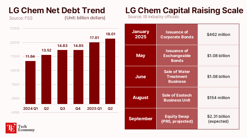 LG Chem is moving to issue up to $2.2 billion in profit return swaps (PRS) backed by shares in its battery subsidiary LG Energy Solution (LGES). The plan reflects its bid to reinforce financial stability amid a prolonged slump in the core petrochemical business, while also maneuvering to adjust its ownership stake to avoid the looming global minimum tax. Market watchers note that LG Chem is likely to proceed with an outright disposal of LGES shares following the PRS issuance. While PRS transactions are typically booked as equity rather than debt, the classification remains open to debate; however, should the underlying LGES shares be sold, recognition as equity becomes more probable.