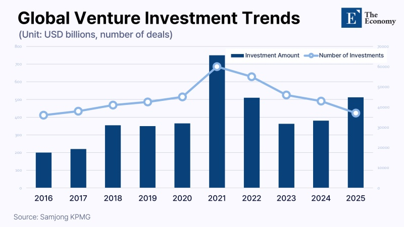 The rebound in venture investment extends beyond Europe. According to a recent report by Samjong KPMG, global venture investment totaled $512.1 billion last year, up 30.7% from $391.9 billion the previous year, marking the third-largest annual total in history. However, the total number of deals declined from 42,366 to 37,746, down more than 11%, underscoring a deepening concentration of large-scale capital into high-quality firms.