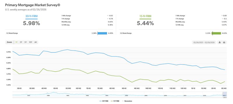 On the 26th local time, Freddie Mac, the U.S. government-sponsored mortgage enterprise, reported in its Primary Mortgage Market Survey (PMMS) that the average rate on a 30-year fixed mortgage declined to 5.98%. This marks a 0.03 percentage point drop from the previous week’s 6.01% and a 0.78 percentage point decrease from 6.76% a year earlier. It is the first time since September 2022 that the 30-year rate has fallen below the 6% threshold. Compared with the same period a year ago, the rate has retreated by 78 basis points.