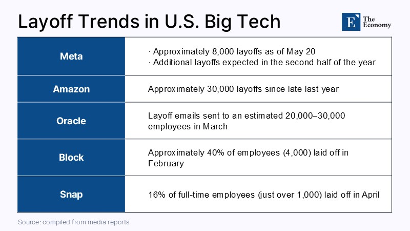 Meta, the operator of social media platforms Facebook and Instagram, is set to carry out large-scale layoffs next month. As advances in artificial intelligence have shifted market perceptions of workforce restructuring in a more favorable direction, management-efficiency strategies framed around AI are spreading rapidly across the broader big tech sector. Some experts argue that technology companies, burdened by bloated organizational structures left behind after the COVID-19 pandemic, are using AI as a convenient rationale for workforce reductions.