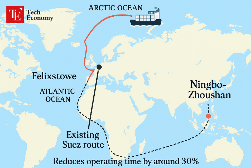 Last Remaining Sea Passage on Earth, the Arctic Route Travel Time Cut by More Than Half Compared With Existing Routes Geopolitical Safety and Other Strategic Advantages Once the realm of exploration, the Arctic passage is being transform