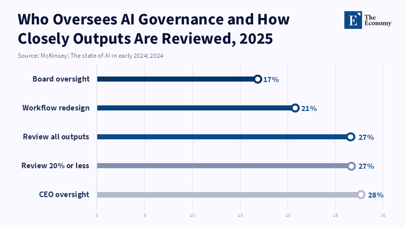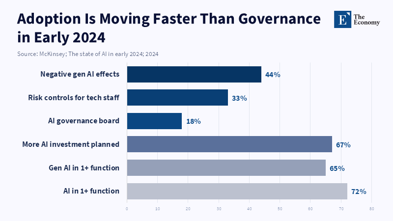 However, organizations vary in their readiness. While many boards are developing AI roadmaps, few organizations have defined AI governance procedures. Only one in five firms had any type of policy related to generative AI use by employees in 2023, according to McKinsey.[20] This implies that many organizations are keen to develop AI capabilities, but have not put necessary limits or guidelines in place. Such a mismatch is typical: leaders know AI is important, but organizations have been slow in adapting. For administrators and decision-makers, the conclusion is clear: organizations must build AI skills across all levels of leadership, both by providing training (more than just an introductory overview) and by embedding AI literacy in executive curricula. This will allow leaders to become "bilingual" in their fields, instead of tripping over technical impediments. Accountability of senior leaders to develop these skills within their teams must also be reinforced. The data clearly show that "AI-ignorant" leaders risk misguided strategy or an underestimation of the coming labor disruption, because as stated previously, "having these domain owners [with AI skills] is probably the single most key role any business needs for its AI transformations".