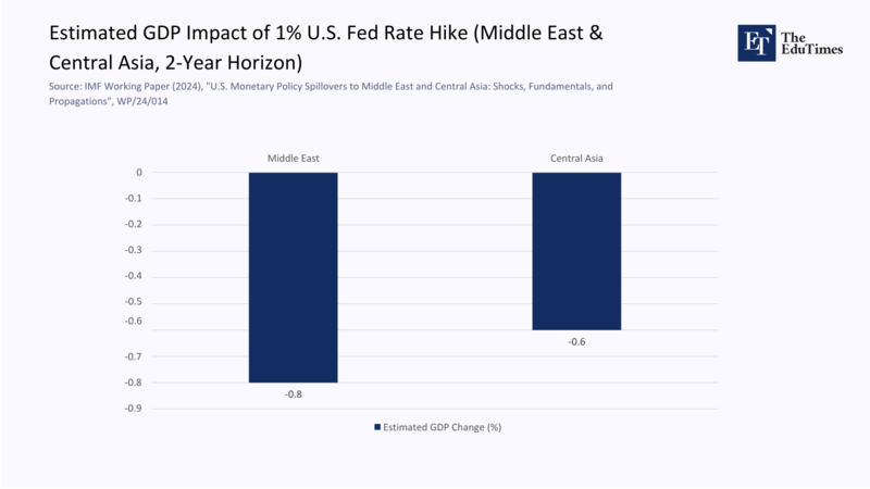 A 2024 IMF Working Paper analyzing U.S. monetary spillovers to the Middle East and Central Asia shows this vividly. It found that a one-percentage-point Fed rate hike can depress output in these regions by up to 0.8% over two years. Moreover, this occurs even when these countries have sound domestic fundamentals. External vulnerability matters more than internal health—particularly through the dollar debt channel and trade linkages.