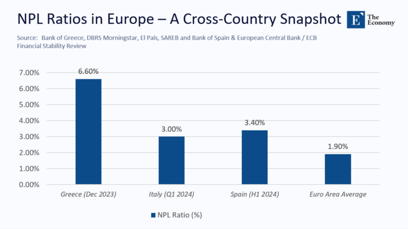 Italy’s earlier GACS guarantee scheme reduced its NPL burden to roughly 3% by 2024, although the first wave of securitizations underperformed due to servicers still learning the craft. Spain chose a different path, warehousing toxic assets in its SAREB “bad bank”; progress has been slower—more than 40 % of SAREB’s housing stock was still vacant late last year. Greece falls between those poles: faster than Spain, slower than Italy, but still nursing a stock three times the euro-area norm.
