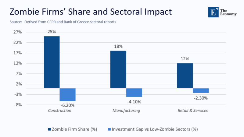 Owners of failing firms often invoke property rights: this is my factory, my life’s work—who is the state to pull the plug? Yet zombie preservation is not brave entrepreneurship but a hidden subsidy levied on everyone else. Taxpayers underwrite guarantee schemes. Depositors backstop banks that postpone write-downs. And, most perniciously, viable firms face crowded credit channels. According to Greece’s data, sectors with high concentrations of zombies saw investment by healthy competitors lag by up to six percentage points.