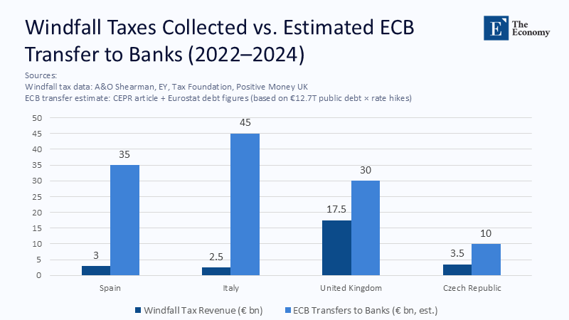A&O Shearman’s survey of European measures finds similar efforts in the Czech Republic, Hungary, and Lithuania but warns that narrow tax bases, complex exemptions, and constitutional challenges will keep yields modest. Even if every euro-zone government cloned Spain’s design, gross revenue would struggle to exceed €40 billion, scarcely one-eighth of the rate-hike subsidy.