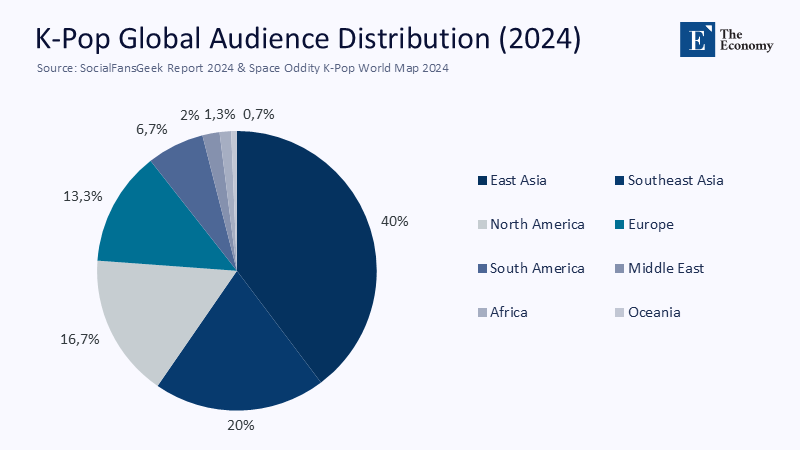 At the heart of the disconnect lies a statistical mirage: global audiences feel larger on a phone screen than on a spreadsheet. Last year, four Korean albums placed in the world's top ten sellers, a headline that ricocheted through local media as proof of mass cultural supremacy. However, social media scraping by analytics firm SocialFansGeek identified roughly 150 million self-identified K-pop fans, under two % of humanity and about one quarter of Spotify's active user base. Meanwhile, Space Oddity's 2024 "K-Pop World Map" reveals that more than 60 % of YouTube views for Korean music still originate within East and Southeast Asia. This geographic concentration belies the myth of universal reach. The Ministry of Culture's own Global Hallyu Survey lists the United States and Brazil among top fandom hubs, yet the share of respondents who consume Korean content weekly languishes below 10%. Put differently, Korean culture is resonant and fast-growing, but it is not yet the planetary lingua franca that domestic commentary routinely proclaims.