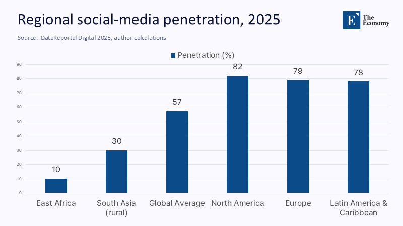 When platforms convert raw user counts into global reach using their dashboards, they perform a sleight of hand. A platform’s ad manager may brag about “audiences” that exceed local census tallies. Yet, in Ethiopia—the second-most-populous nation in Africa—the share of residents linked to any social media identity in January 2025 was just 6.2%. Across eastern Africa, median penetration still hovers below one in four adults; in parts of rural South Asia, it remains under one-third. Even in the United States, the Pew Research Center reports that 45% of adults aged 65 and older do not use any social platform, compared with just 6% of adults under 30. Therefore, treating platform users as a stand-in for the citizenry bakes inequity into research from the outset: whole regions, age groups, and income brackets vanish from the sampling frame before a single treatment is assigned.