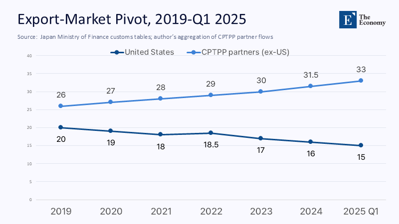 Washington's fiscal spasm has morphed into an externality subsidy for Japan. By weaponizing tariffs, the US validated the demand for an alternative rule set and multiplied Tokyo's diplomatic returns on the CPTPP salvage operation. Australia's 2025 chairmanship, with its ESG-heavy vocabulary, gives Japan further leverage to braid climate and labor clauses into the pact, future-proofing its exports against EU carbon-border adjustments and burnishing credentials with potential European entrants.