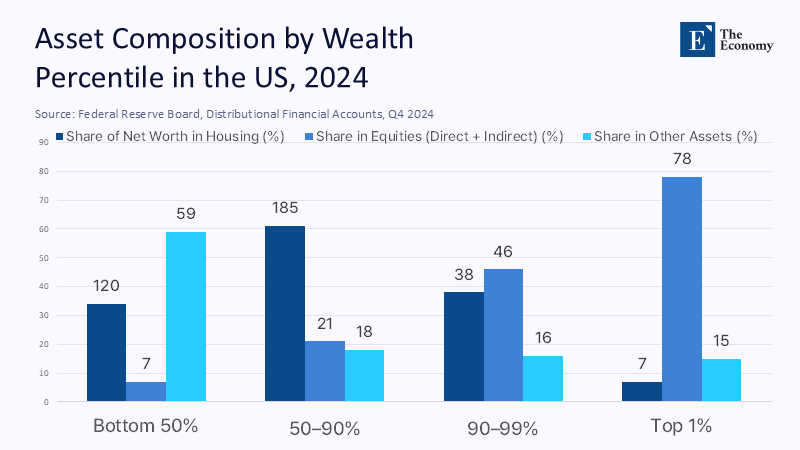 Macro balance-sheet arithmetic confirms the stakes. Real-estate assets constitute roughly sixty cents of every net-worth dollar in US household, which holds between the 50th and 90th wealth percentiles. In contrast, the top 1% keep barely seven cents in housing and park the rest in diversified financial portfolios. Federal Reserve flow-of-funds tables show that in 2024 Q4, stock valuations added $300 billion to household wealth even as residential real estate shed $400 billion, leaving the aggregate net worth at a record $169.4 trillion thanks to equity concentration at the summit. If downtown condominiums and brownstones surrender merely 15% of their pandemic gains—a haircut already realized in San Francisco and Seattle since 2022—median families lose roughly 9% of total wealth while the affluent lose less than two. No stimulus cheque can offset that asymmetry.