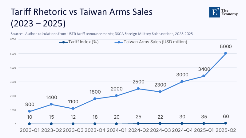 Realists argue that strategic ambiguity has kept guns silent for 45 years, so why assume Trump will upend the balance? Because the arithmetic of leverage is already shifting. When Trump floated a 60-percent tariff in May 2025, Chinese grey-zone sorties jumped 27% over the next fortnight—the steepest rise since Speaker Pelosi’s 2022 visit. Each sortie lines up with a 0.3-percent uptick in war-risk premiums for cargo transiting the Strait. Ambiguity is not holding; it is thinning.