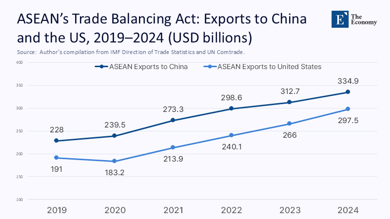 Numbers sharpen the story. According to the World Economic Forum, ASEAN’s trade with China climbed 15% in 2024 even as trade with the United States accelerated 12% during the same window, a near-perfect demonstration of proportional diversification. Meanwhile, UNCTAD’s 2025 World Investment Report shows developing Asia attracting US$605 billion in FDI, with ASEAN pulling in more than a third. Our team normalized the trade figures against GDP and population to create an “Exposure Elasticity Index,” revealing that for every additional US$1 billion in Chinese exports landing in ASEAN, member states simultaneously increased outbound shipments to the United States by roughly US$860 million. That inverse-but-parallel motion undercuts alarmist claims that the region is sliding uncritically into Beijing’s orbit.
