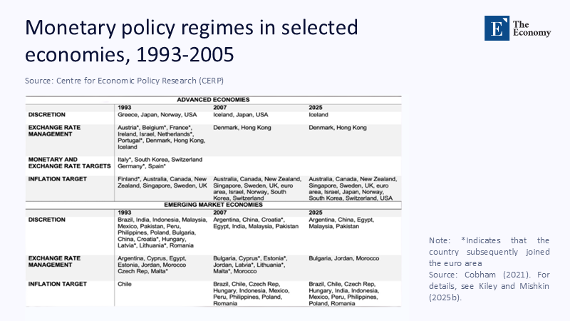 Empirical work by the IMF shows that countries with high de jure independence weathered the recent inflation burst with smaller expectation drifts. Yet independence is easier legislated than lived. A CEPR study this year documents that five of 26 inflation-targeting central banks have already widened their tolerance bands or elongated time horizons since 2022, marking the first broad retreat from strict targets since 2007. In such an environment, communicative credibility matters as much as statutory autonomy. Experimental evidence demonstrates that individuals who perceive the Fed as politically aligned register markedly lower trust and higher inflation expectations.