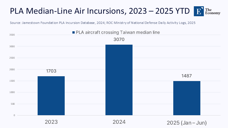 PLA aviation patterns amplify the risk. The Jamestown Foundation reports 3,070 individual Chinese sorties across the median line in 2024—up from 1,703 the previous year—and January 2025 alone saw a record 248. Each intrusion forces Taiwan—and, by extension, the United States and Japan—to consider response options that rely on Korean logistical cooperation for airlift, refueling, and command and control. Remove Seoul from that equation and Beijing gains time‑distance advantages: fewer allied bases on the northern arc, narrower ISR coverage, and a weakened narrative of united deterrence.