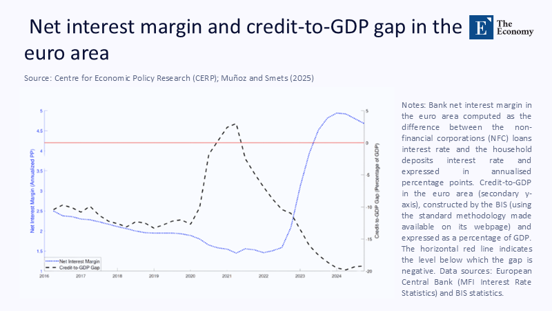 Across the European Union, banks closed 2024 with a sector-wide return on equity of nearly 10.5% and a net interest margin of around 1.66%, close to decade highs. Beneath those buoyant averages, early‑warning lights are flashing: Stage 2 loans—credits that have deteriorated significantly but are not yet non‑performing—reached roughly €1.57 trillion, or 9.7% of portfolios by year‑end. In comparison, ECB supervisory data indicate that the Stage 2 share was near 9.93% for significant institutions in the fourth quarter. In Japan, the central bank notes that default rates are higher than before the pandemic among firms whose profits have recovered slowly. In South Korea, authorities activated a 1% countercyclical capital buffer (CCyB) in 2024, and recent data indicate rising SME delinquencies, the worst in over eight years. These are not stray anecdotes. Today’s fat margins are the mirror image of borrowers’ heavier debt‑service loads—and history teaches that this margin‑debt squeeze often presages tomorrow’s credit losses. The policy choice is not whether to harvest windfalls, but where to keep them: in government budgets via one‑off levies, or inside banks as releasable capital before the rain arrives.
