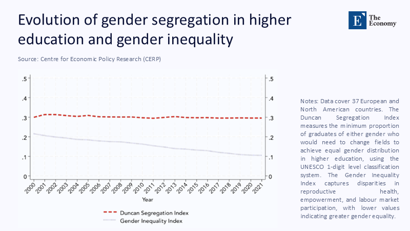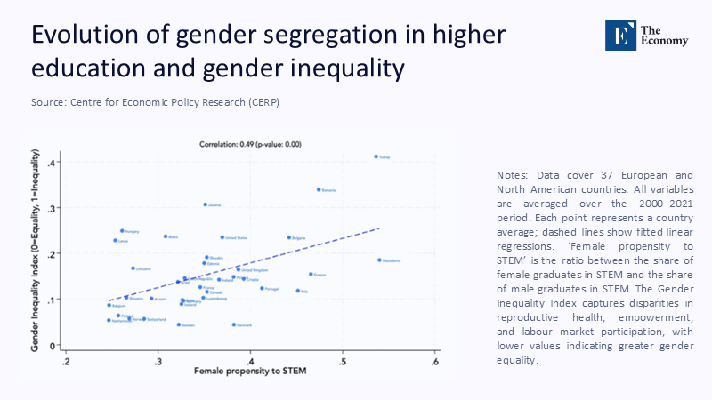 Cultural theorists counter that Nordic girls prefer people-oriented work. Yet the 2025 Global Gender Gap Report lists Iceland, Norway, and Finland among the world’s top five on equality while recording female STEM enrolment below 28 %. Poland, ranked only 77th, posts 34 %. If egalitarian norms were decisive, the league table would invert.
