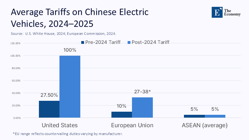 Two clocks tick. First, the geopolitical clock: tariff policy in Washington and Brussels is now bipartisan on China. Even with leadership changes, the strategic frame—derisk where you must, decouple where you can’t—is sticky. That means China’s brokerage posture will intensify, not fade, across 2025–2028. Second, the industrial clock: Southeast Asia’s EV, battery, and solar ecosystems are growing but fragile. They import a high share of Chinese intermediates, making them vulnerable to upstream price shocks and downstream tariff swings. ISEAS and the Asia Society identify short-run gains but warn that escalation could offset them if ASEAN doesn’t move up value chains and strengthen local linkages. In this window, ACFTA 3.0 and RCEP can become vehicles for standards harmonization and SME onboarding—or conduits for deeper concentration of Chinese value-added. The outcome depends less on China’s IT factor than on ASEAN’s policy traction: skills, infrastructure, interoperable data regimes, and selective defensive tools when import surges threaten local industry.