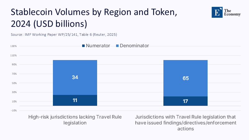 Where sources disagree, I triangulate toward conservative orders of magnitude. For illicit volumes, Chainalysis provides a lower-bound view based on identified addresses; mid-year updates are treated as trend indicators rather than precise totals. For cross-border scale, I rely on the IMF’s 2025 working paper on stablecoin flows, which fuses on-chain and off-chain data with machine-learning to infer geography; I treat the $2 trillion figure as a gross-flow metric, not net settlement or “money supply.” For regulatory status, I privilege primary releases—FATF updates on Travel Rule adoption, EBA guidelines, ESMA statements on MiCA timings, FCA data and notices—over secondary summaries. Finally, where complex numbers are lacking—like the precise impact of AML scoring on false positives—I translate architecture into measurable operational targets (e.g., shares of inflows screened at off-ramp, average time-to-freeze for sanctioned flows) that regulators could adopt and firms can test.