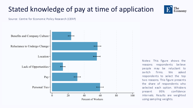 The conventional view assumes that if workers see the right price—an advertised wage—the market will update instantly. Financial markets do this because they have deep liquidity, negligible switching costs, and a robust settlement infrastructure. Employment relationships do not. Contracting for labour is not just a price; it is a bundle of expectations, routines, benefits, and social capital that must be dismantled and rebuilt. New evidence from an extensive German survey shows most workers are not in the dark; they are in the calculus. Many remain despite knowing higher wages are available because their reservation premium, which includes non-wage factors and risk, is not met. A policy that treats pay transparency as a cure-all will therefore disappoint. The more productive reframing is to view transparency as the quotation screen, not the execution venue. The task for policy is to compress the “bid-ask spread” of job change by lowering the non-price costs that separate posted offers from executed switches.