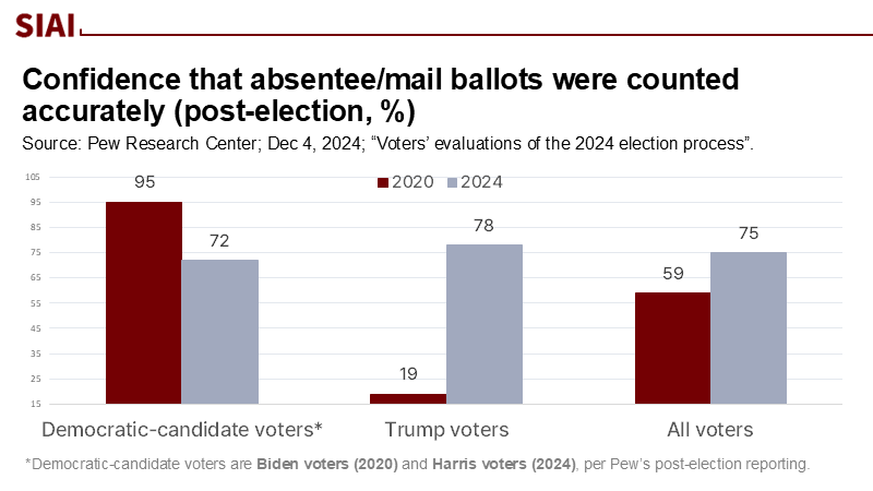 The most telling number from the last election cycle isn’t a turnout figure or a swing-state margin; it is seventy-two. This is the percentage of Trump voters in 2024 who feel confident that absentee and mail ballots were counted correctly. This is a significant increase from just 19% among the same group after 2020. The rules for processing mailed ballots didn’t change a lot. What changed was who won. This shift reveals an uncomfortable truth: for many citizens, confidence is more about identity and outcomes than it is about facts. If accurate information alone shaped beliefs, we would debate how to audit results, not whether counting happened at all. Instead, educators and election officials operate in a world where a clear victory can ease doubts overnight, while a loss can spark them. Narratives spread faster than corrections. Civic education, therefore, plays a crucial role in not only clarifying facts but also fostering civic resilience that persists even when people disagree with the outcome, empowering citizens to make informed decisions.