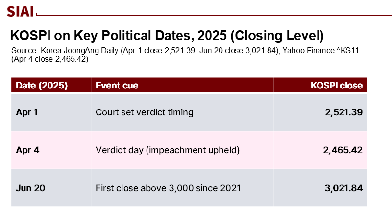 Korea JoongAng Daily. (2025, April 1 & April 4). Kospi rebounds with impeachment ruling announcement; Kospi seesaws during Constitutional Court’s verdict.