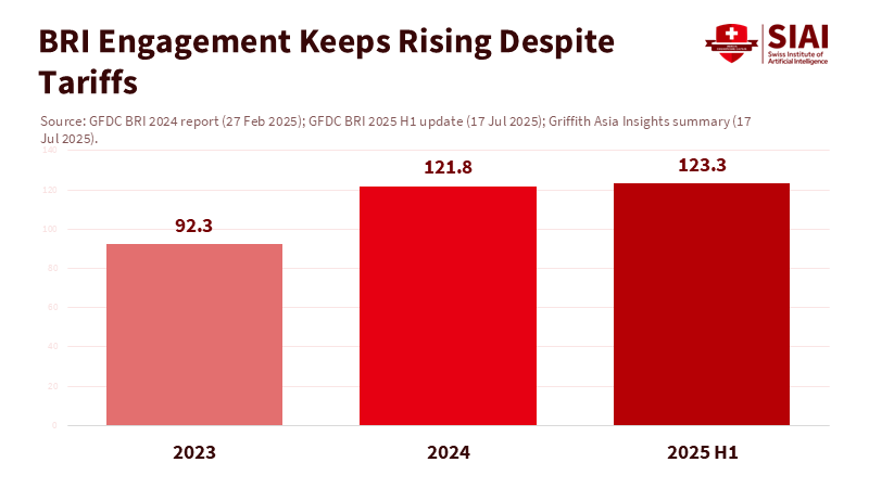Since December 1, 2024, China has provided 100%, zero-tariff access for least-developed countries. By June 2025, it has promised to extend duty-free treatment to all 53 African partners with diplomatic ties to Beijing. This move is not a flashy megaproject; it's a straightforward benefit that helps exporters in Nairobi or Accra ship goods quickly. Meanwhile, Beijing and the European Central Bank gently renewed their €45 billion/CNY 350 billion currency-swap line until 2028. This financial support shows reliability during tough times. Although tariffs limit global trade, Chinese overseas engagement remains strong: BRI-related deals reached record levels in 2024 and continued in the first half of 2025. These actions signal a country trying to appear more cooperative and predictable amid rising tariffs.