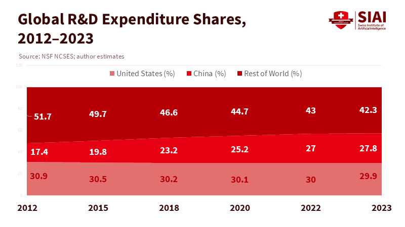 Research policy should follow the three-axis approach. Regarding capabilities, seek complementarity: link U.S. strengths in life sciences and software with Asian strengths in engineering and advanced materials. To enhance satisfaction, create projects that mitigate perceptions of zero-sum outcomes. Open-method repositories, mirrored data enclaves, and jointly governed IP pools can lower political tensions without diminishing ambition. In terms of hierarchy, invest in consortia that are both significant and stable—like standards working groups, data-documentation partnerships, and reproducibility labs. The evidence supports this: China now leads or is nearly on par in several high-quality research metrics. At the same time, U.S.-China co-authorship has decreased from 27% of internationally co-authored U.S. papers in 2019 to 23% in 2023. The goal is to maintain open lines of communication where they are most socially beneficial and least security-sensitive, while developing alternatives where political choke points arise.