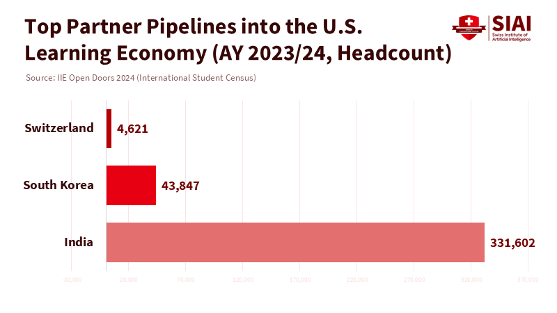 One number stands out over learning economy tariffs: 331,602. That's how many Indian students studied in the United States in 2023, the most significant number ever recorded and the biggest source of STEM talent entering American labs and classrooms. Their tuition and living expenses contributed $43.8 billion to the U.S. economy, supporting over 378,000 jobs on and around college campuses. This figure doesn't even include Korean graduate students, who excel in chip-related fields, or Swiss research partnerships in biomedicine and advanced manufacturing. This is the delicate foundation of the "learning economy": mobility, research ties, and joint commercialization that make universities vital for growth. However, in 2025, the main story revolves around punitive tariffs and brinkmanship. The United States has raised taxes at the border for dozens of partners, imposed 25% tariffs on South Korea, and, by late September, proposed 100% tariffs on branded pharmaceuticals that affect Swiss and Indian exporters. India is also struggling with U.S. taxes of "over 50%" on goods amid stalled negotiations. These are not just isolated trade battles; they are a coordinated test of the knowledge flows that are crucial for long-term productivity. If this standoff continues, the most immediate effects won't be seen at docks or factories; they will be evident in empty seats in graduate seminars, delayed clinical trials, and slower adoption of new technologies.