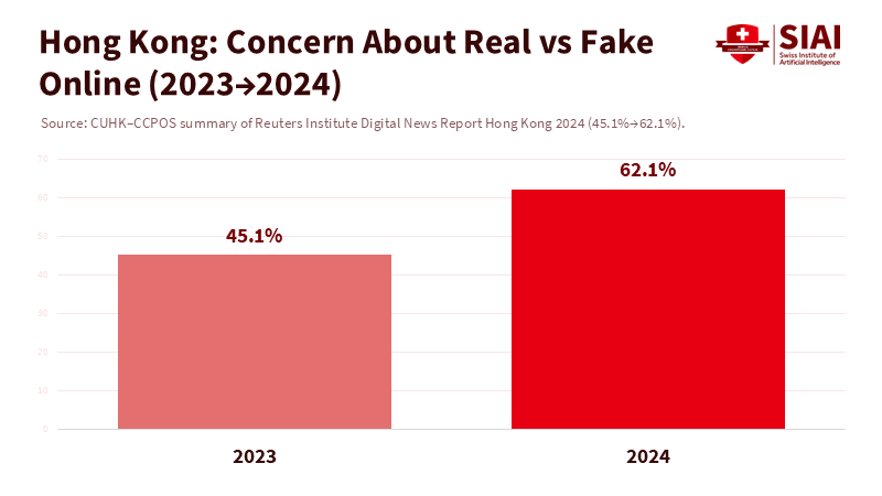 Concern in Hong Kong increased by 17 points in a single year. This sentiment justifies bold actions: university-wide provenance for official media, a public "report deepfakes" channel, and agreements with platforms for timely takedowns. The more students distrust images, the more they need clear protocols in place. Clearer protocols will reduce the chances of rumors replacing proof. This isn't only a task for student affairs; it's an institutional risk management issue.