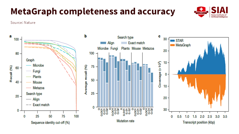 Speed means little without accuracy. MetaGraph keeps high recall even when identity cut-offs decrease and mutation rates increase. These conditions reflect real-world noise. Coverage of human transcripts shows that labels and positions are recovered without needing to realign every read against every reference. Learning search requires the same tolerance since students use imperfect words, and metadata can be disorganized. A graph can still find the correct route because it evaluates adjacent cues together, not just an exact phrase. In essence, it treats knowledge like a network instead of a shelf.