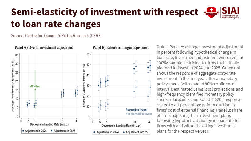 The current debate still treats investment as if a firm’s capital budget only responds to the policy rate. However, recent firm-level evidence shows that investment has a semi-elasticity of about 7 with respect to loan rates. This means that a full percentage-point increase in borrowing costs reduces planned investment by roughly 7%. A 25-basis-point move implies a decrease of about 1–2%. For many managers, this small percentage falls within the normal range of forecasting error and project risk. The same study reveals that when managers are asked why they do not adjust their plans, they cite cash buffers and a lack of projects that meet their internal standards, rather than recent rate changes. This should challenge the idea that small, frequent changes in policy rates have significant power. It's the internal thresholds and liquidity that firms base their investment decisions on, not the latest headline rate.