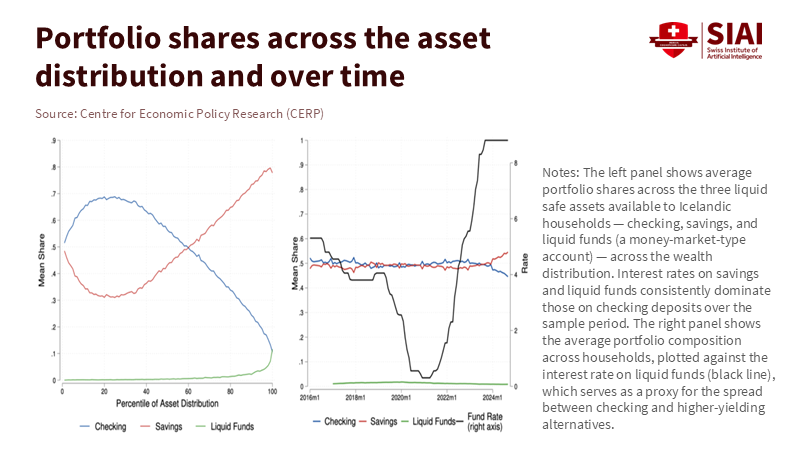 A single figure reveals a hidden flaw in the monetary transmission mechanism. In Iceland, when the difference between low-yield checking accounts and higher-yield liquid accounts increases by one percentage point, the average household cuts its low-yield deposits by only 0.1 percentage points. The wealthiest 10% do respond, but they still miss out on interest income that amounts to about 2.5% of their annual spending. These deposits are not unusual assets; they are safe, insured, and transferable by phone within seconds. Yet cash remains stagnant. If monetary policy depends on savers to seek higher yields, this is inadequate. In contrast, mortgages in the United States adjust almost instantly with the 10-year Treasury and respond quickly to economic changes. Mortgages adjust; deposits do not. The key takeaway is clear: deposit rate elasticity is the weak link, and the gap between what policy intends and what households do is widest where it should be narrowest.