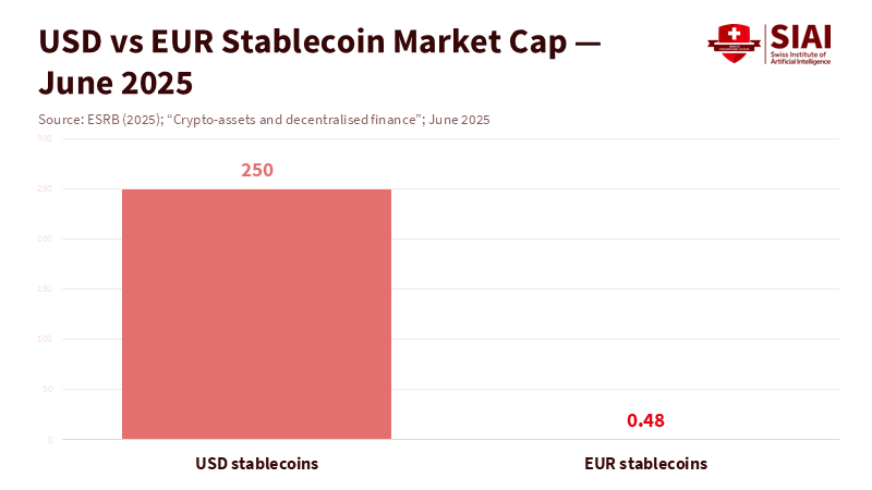 A single number frames Europe's choice. By June 2025, dollar-pegged stablecoins reached about $252 billion in value, while euro-pegged stablecoins stood at around $480 million. This represents a gap of more than 500 to 1. The gap will likely grow unless Europe adopts rules that support the growth of safe euro tokens. Regulators are currently considering a hard ban on multi-issuer stablecoins. The concern is simple: if one issuer fails, the coin collapses, and losses spread across borders. That concern is valid. However, a ban would leave Europe dependent on dollar coins and limit options that could strengthen the euro system. A better approach is to allow multi-issuer designs while requiring a shared buffer, joint redemption rights, and a quick-resolution mechanism. The same union that built collective safeguards for sovereign debt can create one for digital money. The choice is not between a ban or disaster; it's between a backstop or dependence.