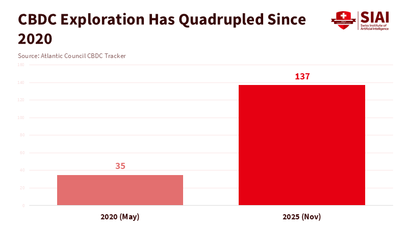 Atlantic Council. (2025). CBDC Tracker (137 jurisdictions, 98% of global GDP; 49 pilots; 3 launches). Retrieved November 3, 2025. Atlantic Council