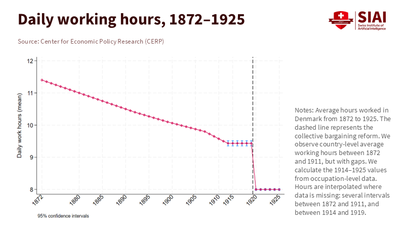 One key number highlights the tough trade-off in workweek productivity. When Denmark implemented the eight-hour workday in 1919, each 1% reduction in hours boosted hourly pay by about 0.4% in Copenhagen. However, weekly earnings still decreased by approximately 0.6%. In the provinces, earnings fell almost in line with the hours cut, as wages hardly changed. While employment did increase, output and pay per worker declined unless companies could get more from each hour of work. This historical trend serves as a warning for today’s discussions. If we shorten the workweek without increasing productivity, total output will decline, and pay will likely decrease as well. Gains in productivity from more time off do exist, but they are not guaranteed across the board. They typically appear where overwork creates issues—high turnover, frequent overtime, and costs or errors linked to health. In other cases, we risk losing income for time without gaining efficiency. The goal should not be simply shorter hours, but rather workweek productivity that aligns with the realities of each sector.