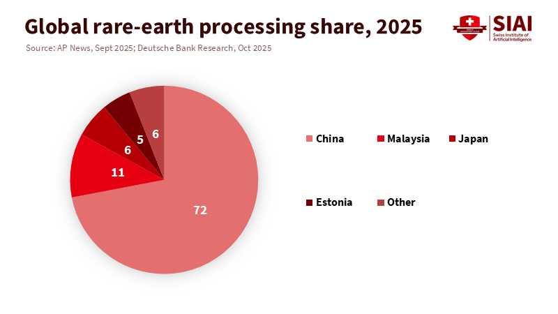 A single fact explains the focus of this autumn’s Asia summits: China refines about 90 percent of the world’s rare earths. This concentration is central to electric motors, wind turbines, smartphones, sonar arrays, and most robotics kits used in STEM classrooms. It also explains why the Busan meeting between Donald Trump and Xi Jinping lasted about 100 minutes and ended with a slight easing of trade controls. Leaders in Asia opted for ceremony as a strategy. When one country controls key resources for both industry and education, others learn to navigate the chokepoint. This is tariff diplomacy in action: public friendliness, private negotiations, and real concessions on tariffs and export rules to keep supply chains functioning. Even after public “truces,” the United States maintains an effective tariff rate close to half on all Chinese imports. At the same time, Beijing carefully adjusts its rare-earth policies. This theater is not just a distraction. It is the policy.