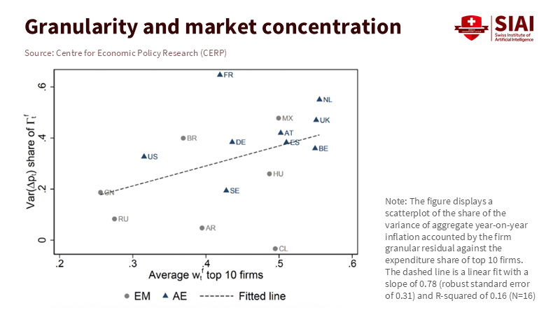 The new "granular" view does not dismiss the importance of supply shocks. Instead, it changes how we understand their economic impact. During the 2021-2022 period, firm-level residuals made up about one-third of the inflation rate in advanced economies, even after accounting for country-level averages. Countries where the top ten firms hold bigger market shares show a more substantial influence from these granular factors. In contrast, economies with more fragmented markets see less impact from individual firms. This suggests that the pass-through of rising energy or import prices varies widely. When a concentrated group of "systemically important price-setters" faces a global cost shock, they tend to adjust their prices together, often across several product lines at once. This results in a significant macro effect. Therefore, the relationship between market power and inflation is structural rather than coincidental.