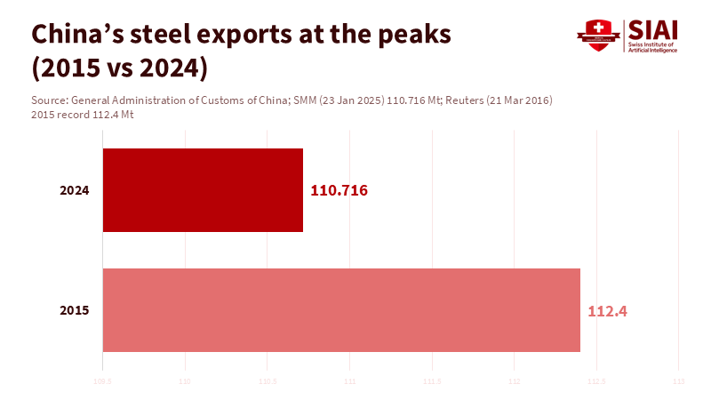 Steel illustrates how subsidy logic operates. In 2023, China produced about 1,019 million tonnes of crude steel, more than seven times India’s output and twelve times Japan’s. Chinese steel exports are expected to reach a record of around 118 million tonnes in 2024. This volume meets weak demand in Europe and elsewhere, pushing prices down and leading to defensive tariffs that raise costs for everyone. Overcapacity looms as the hidden force in the system. The OECD warns that spare capacity could exceed 680 million tonnes this year, mainly concentrated in Asia and the Middle East. These figures shape policy decisions. When price drops stem from subsidized capacity, importing countries reach for countervailing duties, carbon border fees, or “local content” rules. The cycle perpetuates itself.