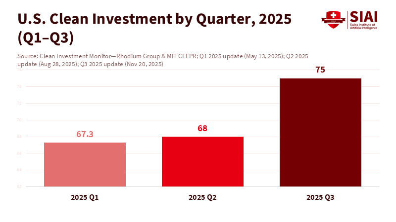 Industrial policy success is not about press releases. It is the steady transformation of public risk-taking into private investment and lasting production capacity at speed. The signs appear in concrete, steel, and production output. One clear indicator is construction spending. U.S. manufacturing construction reached a seasonally adjusted annual rate of about $222 billion in mid-2025, significantly above pre-2022 levels despite tighter financial conditions. This figure matters because it reflects actual work in progress, not just planned projects. Another sign is the consistent flow of clean investments each quarter. In the first two quarters of 2025, clean energy and transport investments remained in the $67–68 billion range before reaching $75 billion in the third quarter. Consistency is more valuable than spikes. This distinction sets successful industrial policy apart from one-time stimulus efforts.