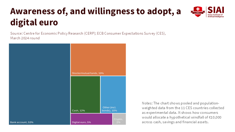 The main question is not just whether people know about a central bank digital currency, but whether they'll actually use it daily. In fact, surveys in the largest euro-area countries indicate a general willingness to use a digital euro. In particular, younger, wealthier, and educated people are more inclined to adopt it. Specifically, they would likely use it for shopping and online payments, but are less interested in using it as a savings account. Importantly, this fits with the intended purpose: a digital euro should be for payments, not for storing large amounts of wealth that could take money away from banks. Furthermore, early signs suggest that imposing limits on how much digital euro someone can hold would move only a small amount of funds from bank accounts. Overall, this is beneficial for financial stability and allows for a gradual introduction that can build trust.