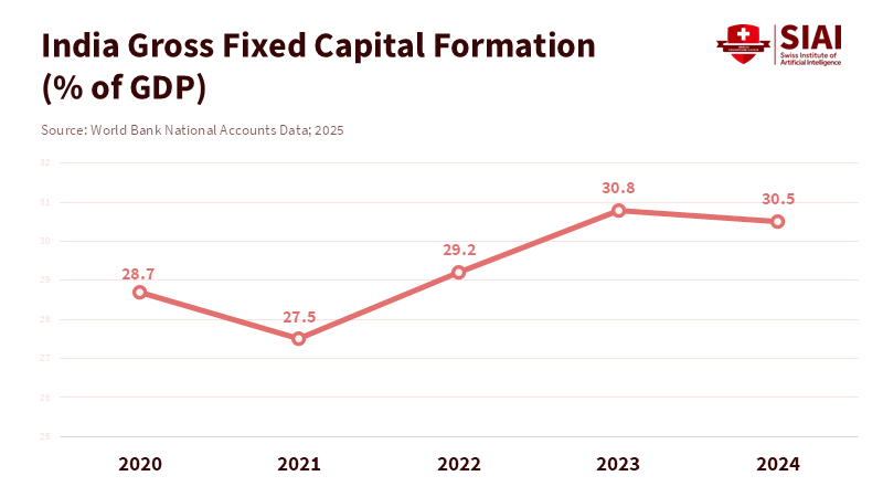 Some people will say that India's growth is fragile because a weak Chinese economy could reduce global demand or interrupt supply chains. This is a valid concern: China's economic problems could lower demand for goods and services. However, there's also an upside. According to the World Bank, as companies look to diversify their supply chains away from a slowing China, India stands to benefit if it improves its logistics sector, reduces the cost of doing business, and keeps stable policies, since well-organized logistics are key to making India a more attractive manufacturing destination. The argument that India's growth is primarily driven by consumer spending rather than long-term investment overlooks the recent, measurable increase in investment and the government policies intended to encourage it. Investment now accounts for close to 30% of India's GDP, and investment growth has been positive in recent quarters. These figures indicate that investment is catching up with consumer spending.