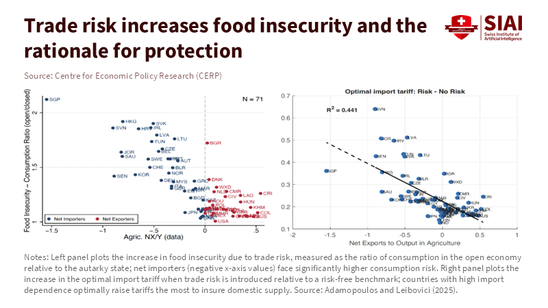 This explains why countries that import large amounts of food often have stronger agricultural protections than those that export food. It's not because they want to; it's because they feel they need to protect themselves more. Still, people in charge need to know the difference between sensible, temporary protection and becoming reliant on it forever. The most effective way is to use short-term border controls carefully. Pair them with emergency reserves or vouchers for those who need them, and have a clear plan for changes that boost productivity so you don't need as much protection in the future.