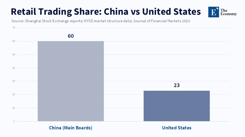 The behavioral substrate of those dynamics is the composition and psychology of China’s investor base. China’s equity markets have a much larger share of retail trading than those in mature Western markets. Multiple market studies and exchange disclosures indicate that retail investors account for the majority of daily trading volume on China’s main boards—a share far above typical U.S. levels. Retail dominance amplifies momentum and narrative-based flows. Individual investors, quick to buy into a national mission narrative and slow to price in complex downside scenarios, can generate outsized demand for IPOs that fit a patriotic or state-endorsed frame. That demand creates the conditions under which an IPO can succeed even when traditional valuation metrics might be unconvincing.