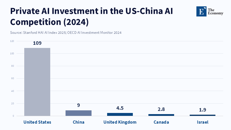 In 2024, the United States saw approximately $109 billion invested in private AI ventures, while China attracted around $9 billion. This tenfold difference indicates American dominance, but the amount of money involved doesn't guarantee long-term success. This financial gap is the backdrop to the AI rivalry between the U.S. and China, but it's not just a simple matter of who spends more. China has been able to quickly close performance gaps by using government resources and its own internal markets. In the next five years, the focus will shift from simple catching up to strategic footing: which country sets the technical rules, which forms alliances, and which may limit access to parts of the global AI network. This is important for educators and officials because the selections we make today—regarding what we teach, who has access to research, and how we control exports—will set us on paths that either create more chances for everyone or solidify existing advantages. If we only look at the competition as a matter of numbers, we'll miss the changes happening in education, research, and regional standards due to political influence.